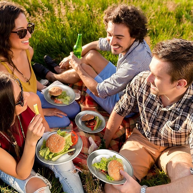 - Includes Compact Travel Case - Each set of stainless-steel camping plates and bowls also comes with a high-quality storage bag with a handle that makes them easy to store or take with you on picnics, vacations, or anywhere where adventure leads.