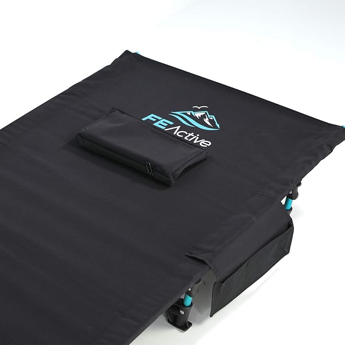- FEATURES: With your cot, you'll also receive an attached side pocket where you can put your items, replacing a camping table. Additionally, you'll receive a travel bag that allows this portable bed to fit snug in any backpack