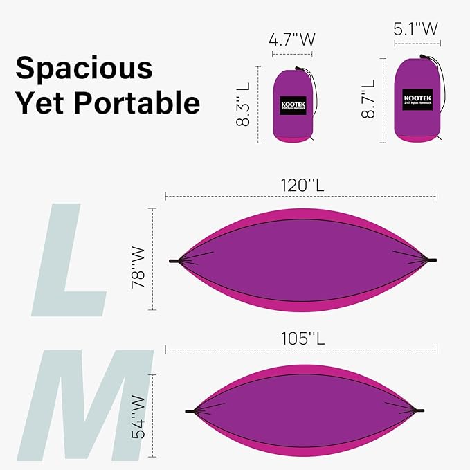 Kootek Camping Hammock, Portable Hammocks with Tree Straps & Attached Carry Bag, Camping Essentials Gear, Perfect for Outside Indoor Hiking Beach Backpack Travel