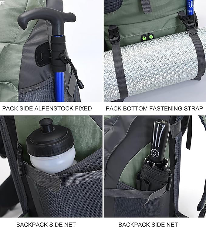 - Large Capacity & Multiple Compartment: Large capacity with a spacious main compartment and multiple pockets provides enough room for 3 or 4 day trips. Zipper closure, tight closure to prevent the items falling from the backpack. Two side pockets to carry additional water bottles. convenient and practical. Meets most airline size requirements.