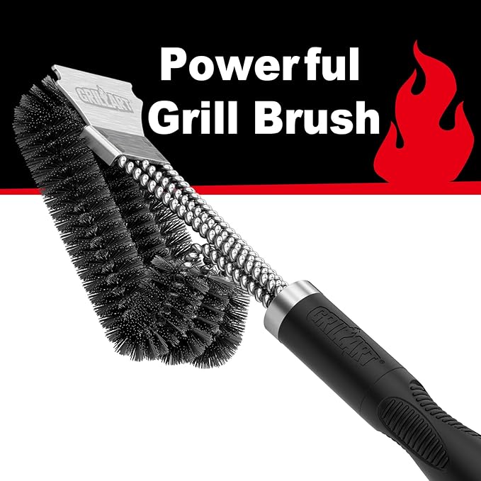 GRILLART Grill Brush and Scraper, Extra Strong BBQ Cleaner Accessories, Safe Wire Bristles Barbecue Triple Scrubbers Cleaning Brush for Gas/Charcoal Grilling Grates, Wizard Tool BR-8115