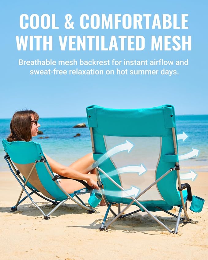 - 【Versatile for All Outdoor Adventures】Stay cool and comfortable even on the hottest days. Our mesh back design allows air to flow freely, keeping your back cool and preventing heat buildup, so you can enjoy the outdoors without discomfort. Perfect for a variety of outdoor activities! Whether you're at the beach, camping, picnicking, or simply relaxing on your lawn, this chair is the ideal choice for comfort and durability.