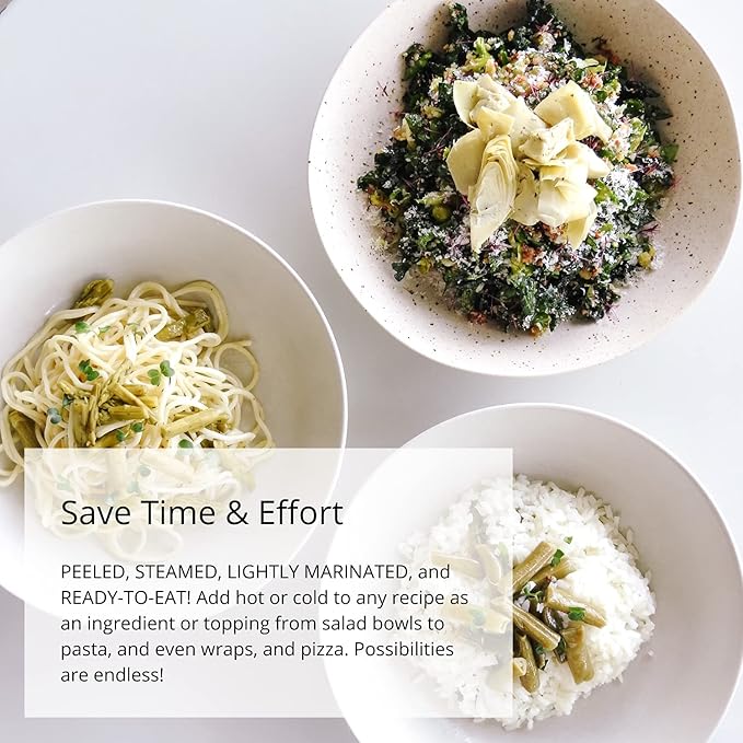 - LIGHTLY MARINATED VEGETABLES: We’ve taken select cuts of Asparagus, French Beans, Artichoke and Olives seasoned them with fragrant rosemary, aromatic oregano, tangy lemon and lime, parsley, thyme, basil, chili flakes and more then tossed them in the finest extra virgin olive oil.