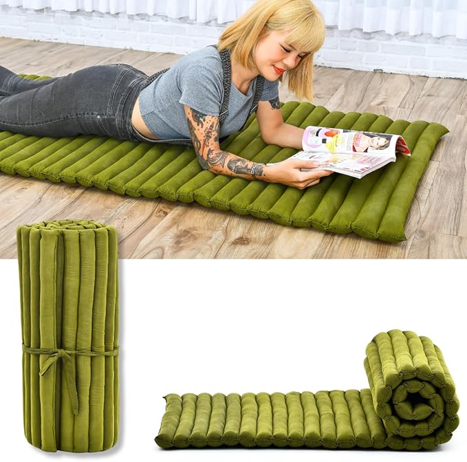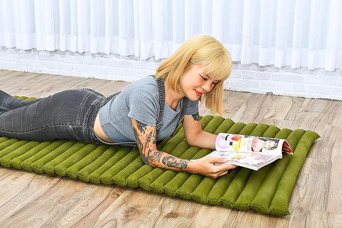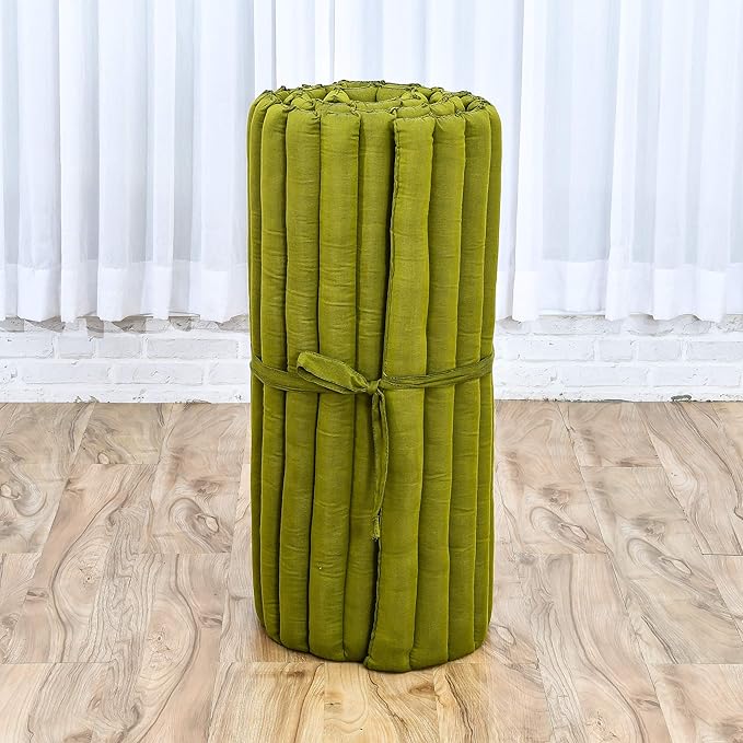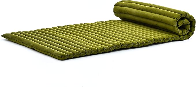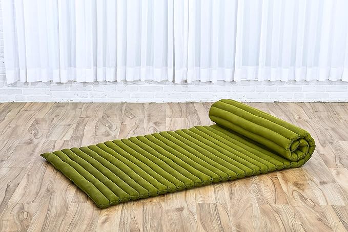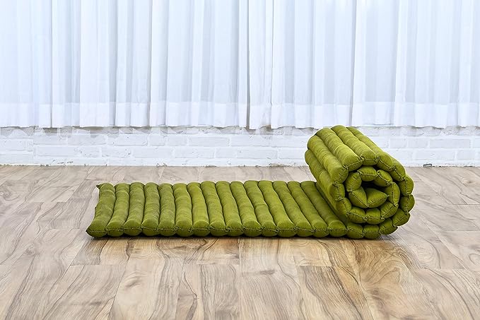 Leewadee - Foldable Floor Mattress - Japanese Roll Up Futon -Trifold Tatami Mat- Guest Floor Bed - Camping Mattress - Thai Massage Mat, Kapok Filled, 75 x 28 inches, Green