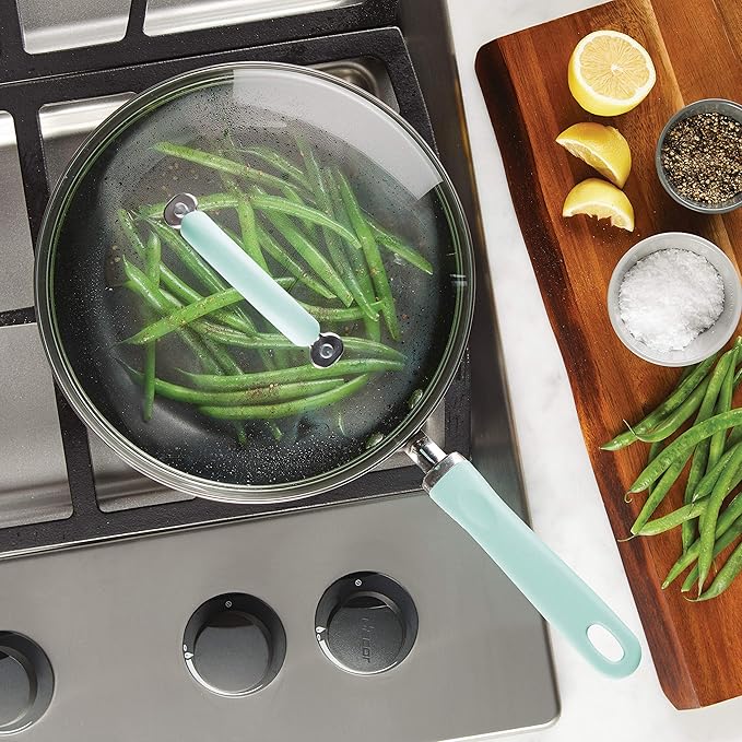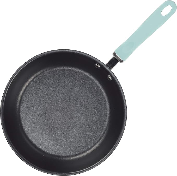- SUPERIOR HANDLING: Frying pan features double-riveted, stainless steel and silicone grippy handle; flared rim for easy pouring