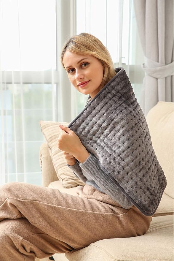- 17''x33'' XXXL Size for Full Body Use: Ambershine heating pad is a lifesaver for tension, aches, cramps and stiffness in your neck, shoulder blades, trapezius and back. The heating pad is big enough to cater to most body shapes and sizes. Also can relief your pain and relax your muscles of all your body part, your legs, arms, waist, abdomen and more.