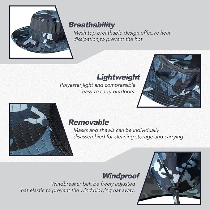 - 360° SUN PROTECTION: Flap Hats Sun Cap UPF 50+ sun protection to keep delicate skin on the neck ears and face safe from harmful rays,The whole surrounded by a large shawl , free removal, sunscreen and breathable. in addition to a removable neck flap and breathable face protector,It protects skin from the elements and the mask can protect face from dust.New sun cap with removable flaps