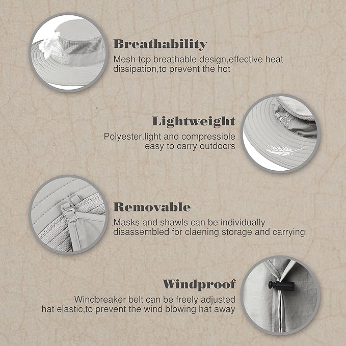 • 360° SUN PROTECTION: Flap Hats Sun Cap UPF 50+ sun protection to keep delicate skin on the neck ears and face safe from harmful rays,The whole surrounded by a large shawl , free removal, sunscreen and breathable. in addition to a removable neck flap and breathable face protector,It protects skin from the elements and the mask can protect face from dust.New sun cap with removable flaps