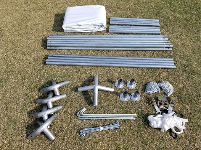 - STURDY GALVANIZED STEEL FRAME: Built with a 1.5" diameter galvanized steel frame and 1.25" schedule 40 steel pipe fittings, these outdoor canopies are zinc-plated for durability; they do not require a center pole, providing optimal space