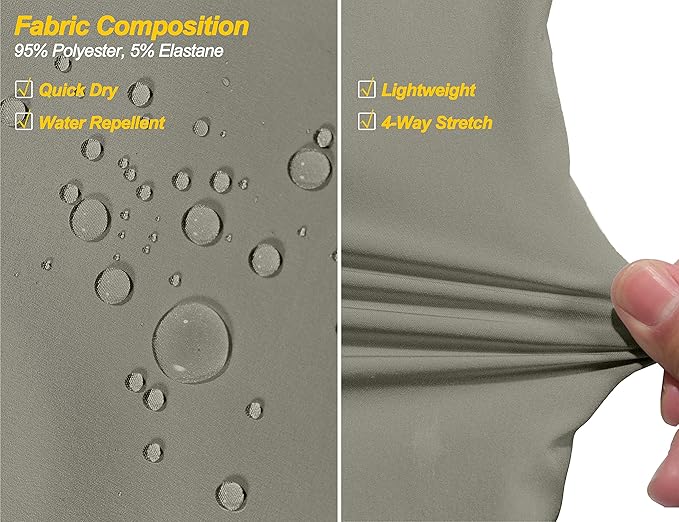- Quick dry and breathable fabric dries fast; advanced water repellency keeps you cool and dry