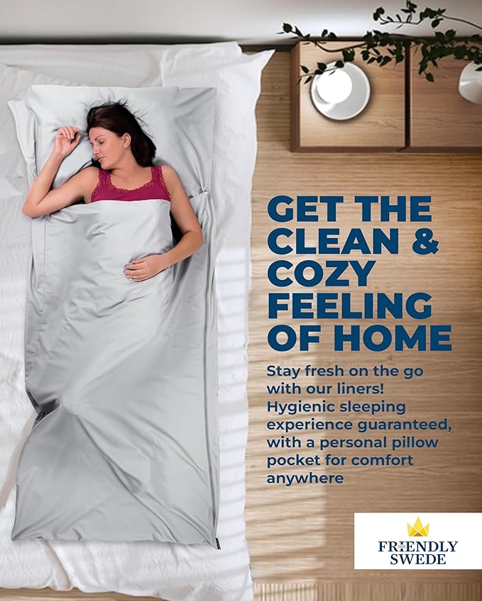 The Friendly Swede Sleeping Bag Liner — Ultralight Polyester or Cold Weather Microfiber Adult Sleep Sack; Thin Travel Sheets for Hotel; Camping Sheets; Travel Sleeping Bag with Pocket-Size Stuff Sack