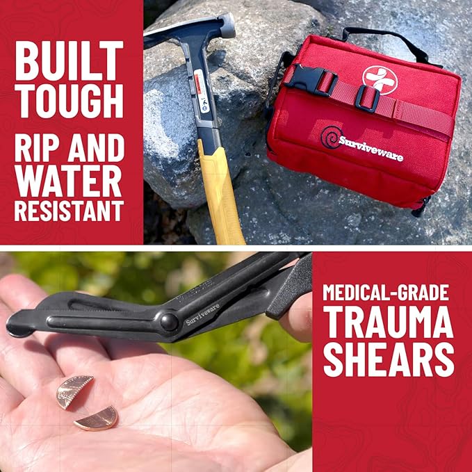 Surviveware 119 Pcs Comprehensive Premium Survival First Aid Kit - Medical Emergency Kit for Travel Camping Gear, Home Essentials & Outdoor Emergencies - HSA & FSA Eligible Survival Kit