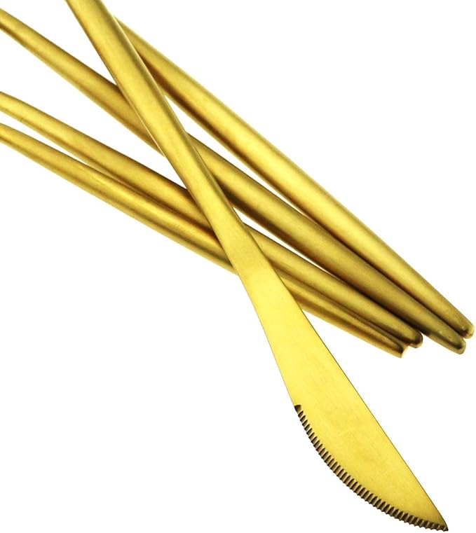- ECO-FRIENDLY: Simple classic modern design would match well with your existing cutlery and elevate everyday meals into a fine dining experience,The handle is a eco-friendly color electroplating frosted appearance which is different from the common silver handle,special and comfortable,rust proof, high hardness.