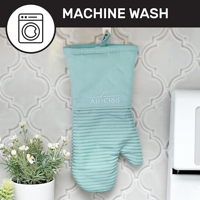 - MACHINE WASHABLE. All Clad's Silicone Oven Mitt Set is machine washable for hassle-free cleaning.