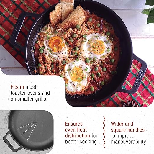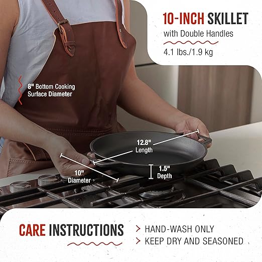 - DURABLE CAST IRON FRYING PAN: Our professional cast iron skillet is designed with the user in mind. It's made with highly durable cast iron that has excellent heat retention, invisible curvature that prevents warping, and bigger loop handles for increased stability when you're using oven mitts.