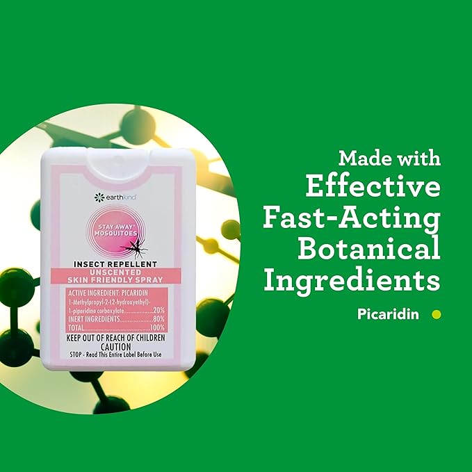 EarthKind Stay Away Mosquitoes Insect Repellent - Plant-Based, Unscented Mosquito Body Spray with Picaridin - Up to 14-Hour Protection - Safe for Children When Used As Directed - Travel Size (4-Pack)