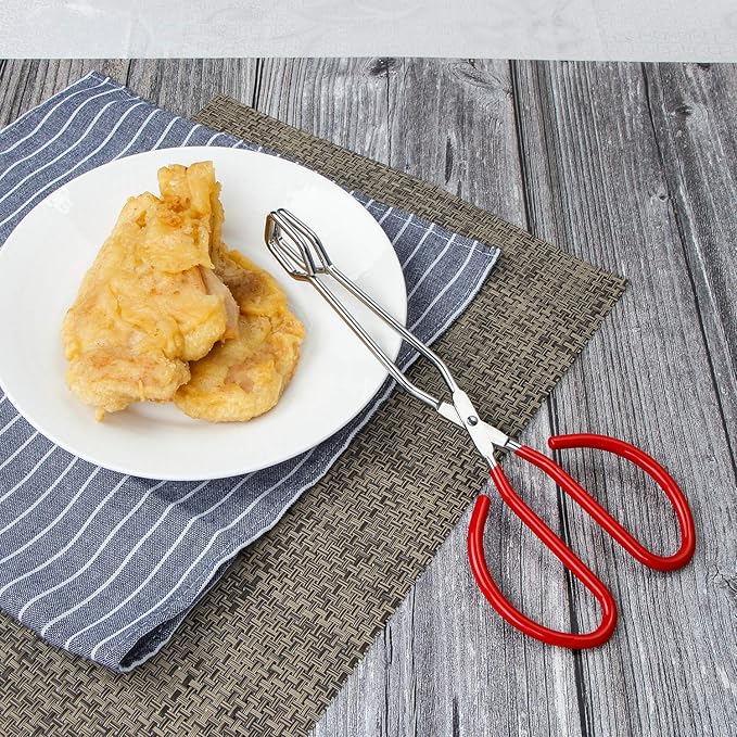 - PROFESSIONAL QUALITY: The kitchen scissors tongs are made of food-grade stainless steel, and the square designed head features non-slip embossing which is very suitable for flipping turning and lifting food