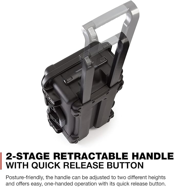 - WHEELED & PORTABLE: Featuring a 2-level retractable handle and smooth-rolling polyurethane wheels, NANUK wheeled hard cases offer convenient transport and are airline carry-on approved, making them the perfect travel hard case. Integrated lid stays keep the case securely open for easy access.