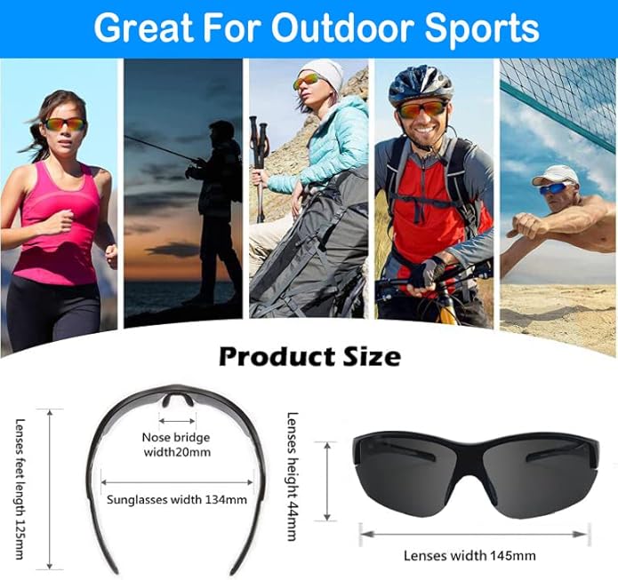 - ๐ TAC POLARIZED LENS - Filter Lights Glare - Reduces Refractions, Blocking Reflections, Glaring Lights, Increases Color Contrast, HD High Definition Improve Vision, Decrease Eye Fatigue. It is scratch resistant and Shatterproof. Great for bike riding, driving, baseball, softball, basketball, mountain climbing, fishing, playing golf, riding motorcycle, hiking, bicycle biking, tennis, boating, skiing, hunting, skateboarding, triathlon, marathon, running, racing, trekking and athletic activities.