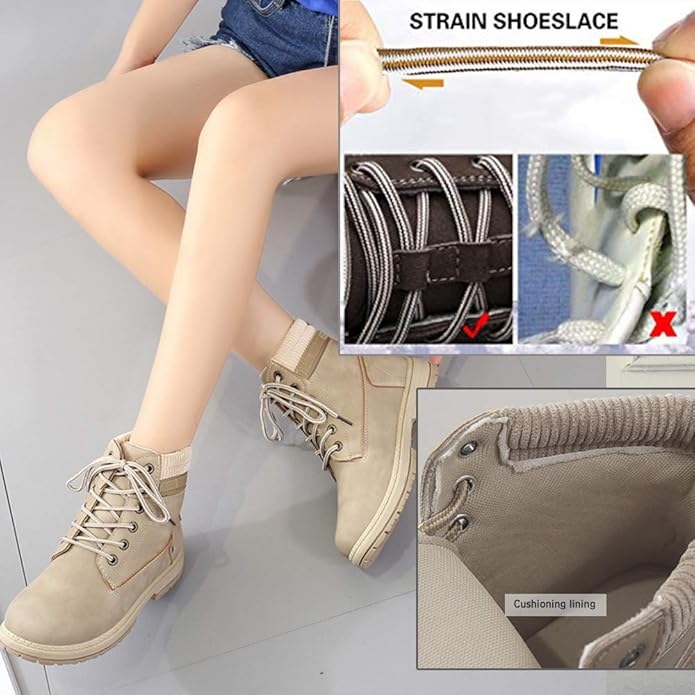 Athlefit Women's Work Waterproof Hiking Combat Boots Lace up Low Heel Booties Ankle Boots