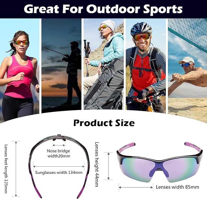 - ๐ TAC POLARIZED LENS - Filter Lights Glare - Reduces Refractions, Blocking Reflections, Glaring Lights, Increases Color Contrast, HD High Definition Improve Vision, Decrease Eye Fatigue. It is scratch resistant and Shatterproof. Great for bike riding, driving, baseball, softball, basketball, mountain climbing, fishing, playing golf, riding motorcycle, hiking, bicycle biking, tennis, boating, skiing, hunting, skateboarding, triathlon, marathon, running, racing, trekking and athletic activities.
