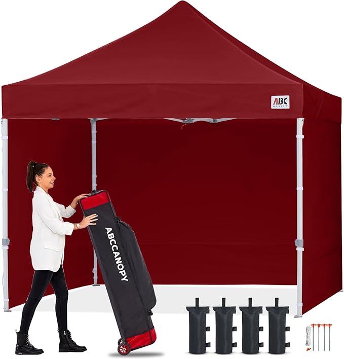 ABCCANOPY Easy Pop Up Canopy Tent with Sidewalls 10x10 Commercial -Series, Burgundy