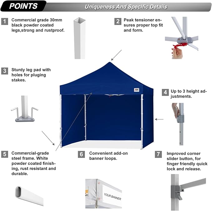 ABCCANOPY Easy Pop Up Canopy Tent with Sidewalls 10x10 Commercial -Series, Navy Blue