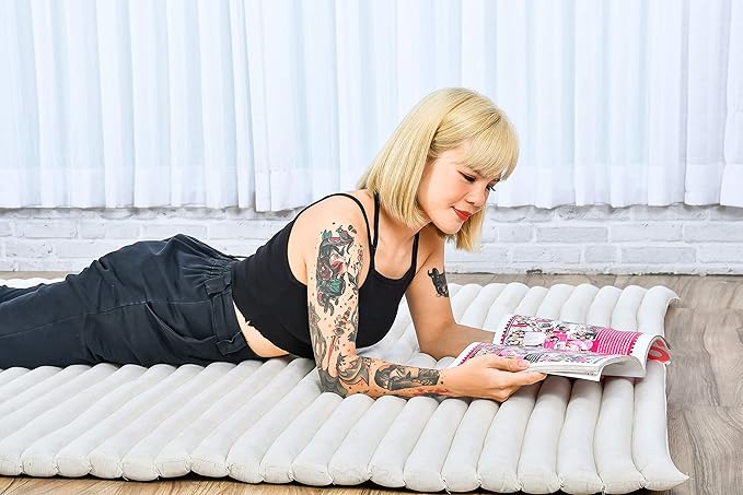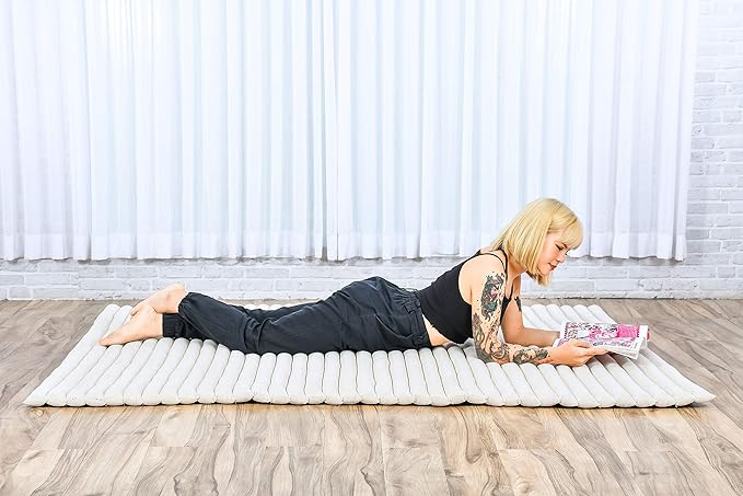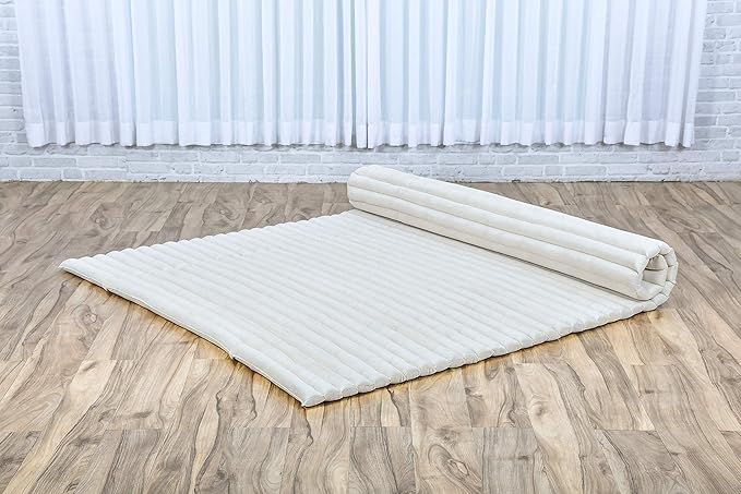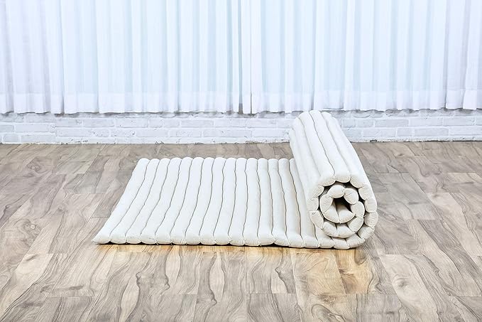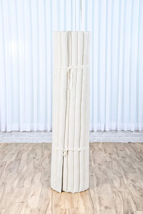 Leewadee - Foldable Floor Mattress - Japanese Roll Up Futon -Trifold Tatami Mat- Guest Floor Bed - Camping Mattress - Thai Massage Mat, Kapok Filled, 75 x 57 inches, Ecru