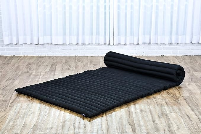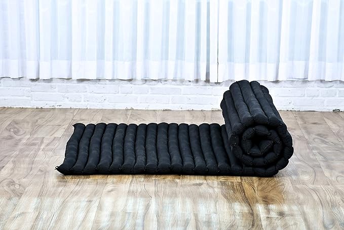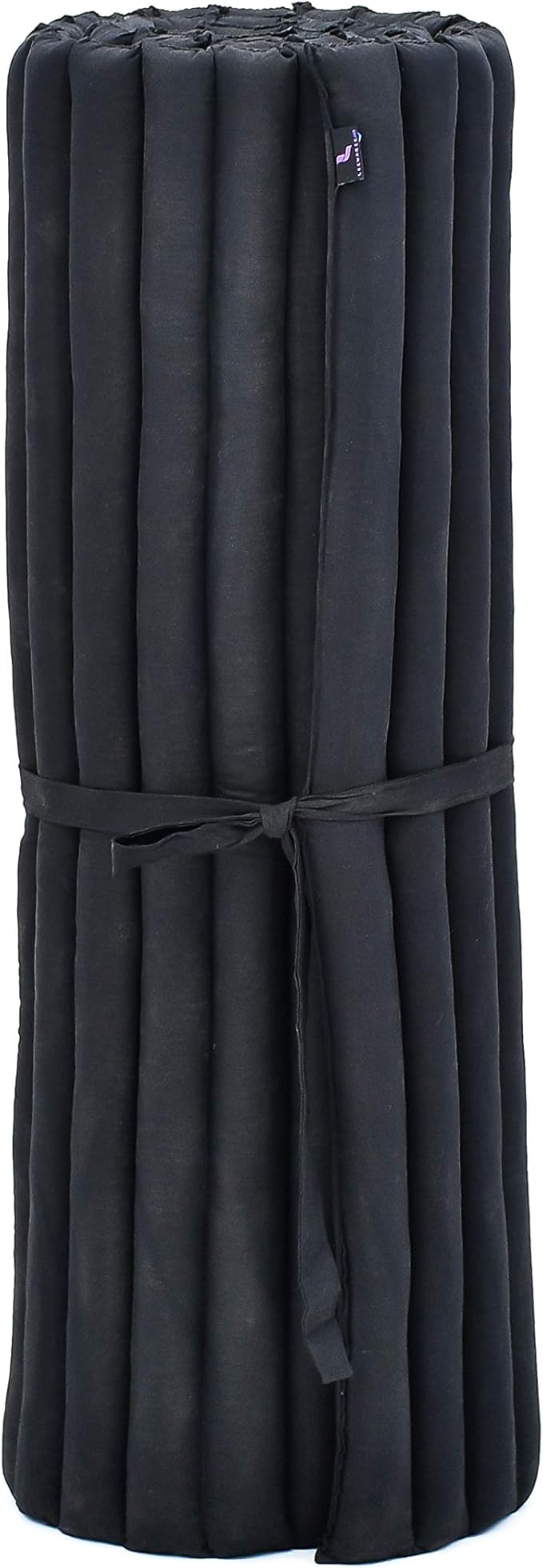 Leewadee - Kapok Roll Mat – Handcrafted Folding Sleep & Relaxation Mattress from Thailand, Ideal as Guest Bed, Camping Mat, Yoga Mat or Traditional Futon, 75 x 39 inches, Black