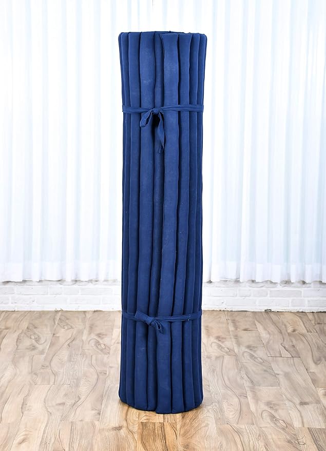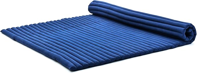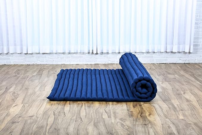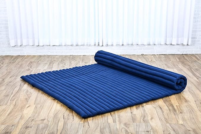 Leewadee - Foldable Floor Mattress - Japanese Roll Up Futon -Trifold Tatami Mat- Guest Floor Bed - Camping Mattress - Thai Massage Mat, Kapok Filled, 75 x 57 inches, Blue