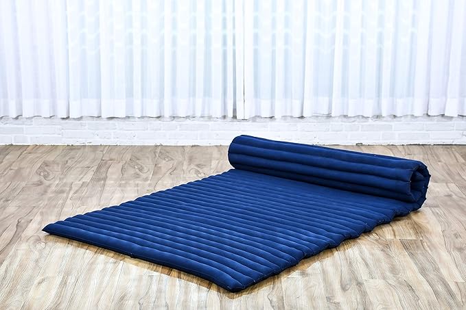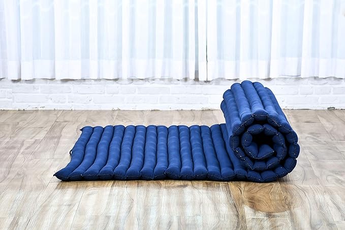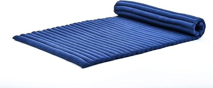 Leewadee - Kapok Roll Mat – Handcrafted Folding Sleep & Relaxation Mattress from Thailand, Ideal as Guest Bed, Camping Mat, Yoga Mat or Traditional Futon, 75 x 39 inches, Blue