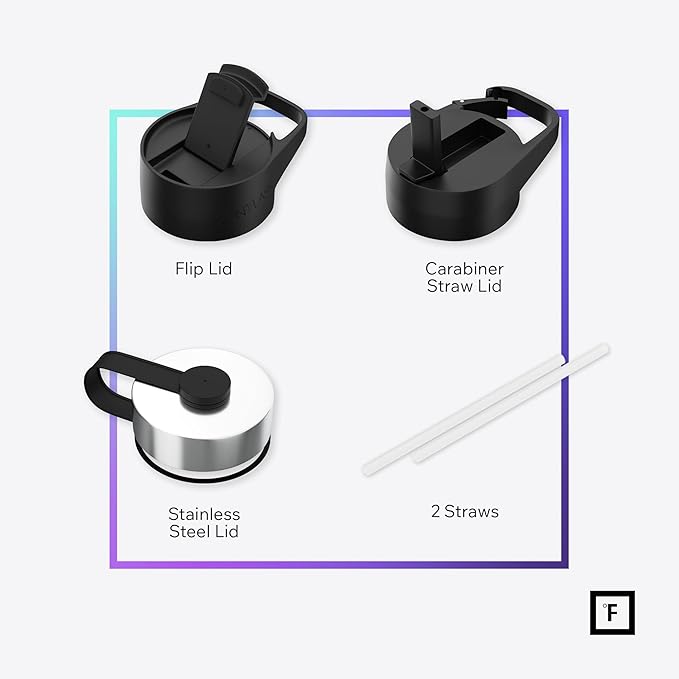 - 3 LIDS: YES, Iron Flask comes with THREE different LEAK PROOF lids. Carabiner Straw Lid with 2 Straws, Flip Lid, and a Stainless Steel Lid! *NOTE: The stainless steel lid is plastic from inside and stainless steel from outside*