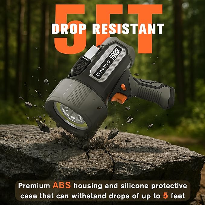 - 【What You Get】The FORTO super bright 5000 lumen spotlight comes with a portable EVA carrying case. Inside, you'll find the 5000 lumen spotlight, a charging cable and an instruction manual. For any pre-sales or after-sales issues or questions, feel free to reach out to us at any time. We are available 24/7, dedicated to providing you with the most satisfactory service.