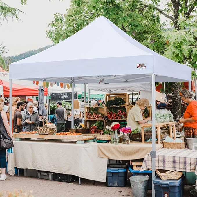 - ✅Large Space: 10 x 10 Pop Up Canopy with straight legs provides a true 100 square feet shade. Big enough for about 6-10 people to sit under it. Center height is 132 inch. Suitable for market stalls, parties, picnics or any outdoor events. MASTERCANOPY commercial canopy tent is suitable for both sunny and rainy days.