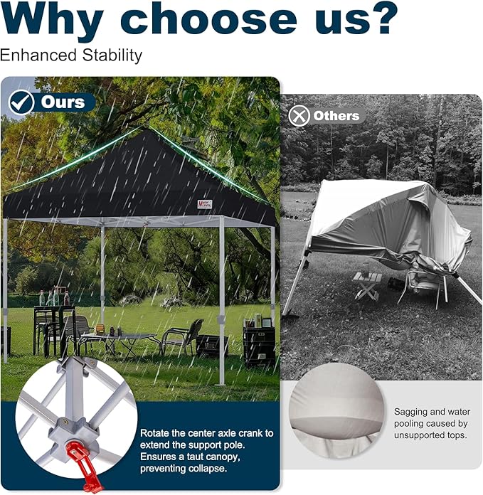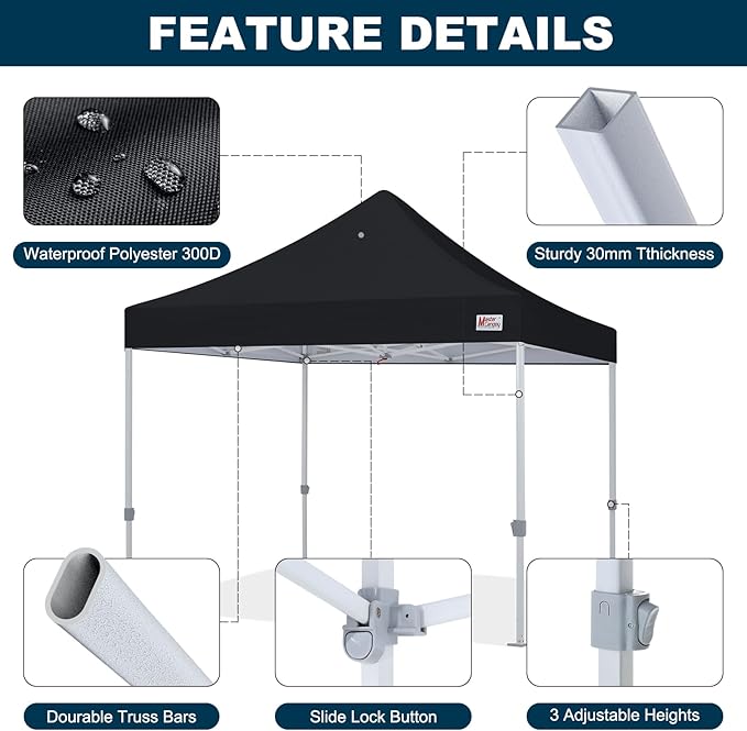 - ✅Strong and Sturdy Frame: 10 x 10ft. Full Truss Structure of powder-coated 1mm thick square shaped legs and super strong cross truss is very sturdy, which can withstand 50 km/h wind the sandbags, ropes. Good looking and rust-resistant.