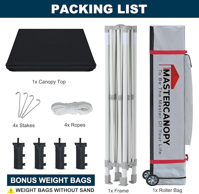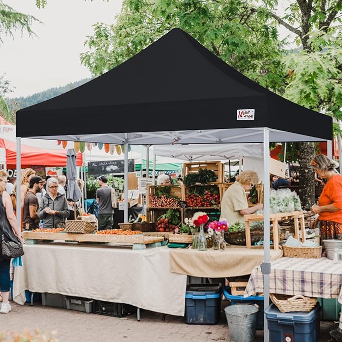 - ✅Large Space: 10 x 10 Pop Up Canopy with straight legs provides a true 100 square feet shade. Big enough for about 6-10 people to sit under it. Center height is 132 inch. Suitable for market stalls, parties, picnics or any outdoor events. MASTERCANOPY commercial canopy tent is suitable for both sunny and rainy days.