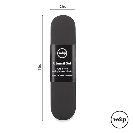 - ECO-FRIENDLY DESIGN: Put a fork in single-use plastic waste. This compact set of stainless steel silverware keeps a slim profile, while the silicone carrying case helps things stay clean in transit; Includes fork, knife, spoon and silicone case; Dimensions: 7.5 x 2 x 0.5 in