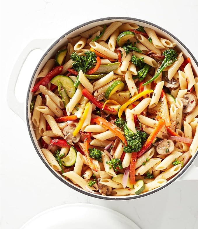 Amazon Basics Cast Iron Dutch Oven Pot with Lid, Enameled, Round, Dual Handles, Heavy-Duty, Medium, 6-Quart, Matte White