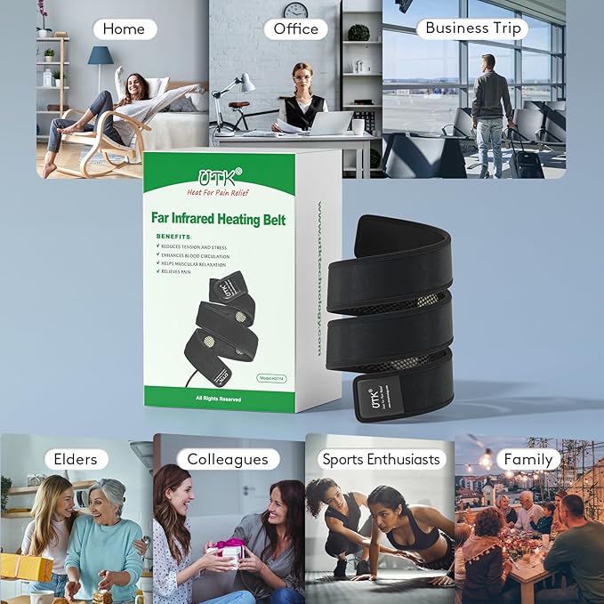 - MULTI-FUNCTION: The utk far infrared heating pad with an adjustable strap design allows for customized shaping and wrapping around different body parts, providing an ergonomic fit that can be personalized to individual needs. Suitable for full-body application including neck, wrists, knees, ankles, upper arms, and calves, it effectively alleviates sports injuries, chronic pain, or long-term strain discomfort. Supports wide voltage range (universal for global voltage 110V-240V), suitable for outdoor or travel use