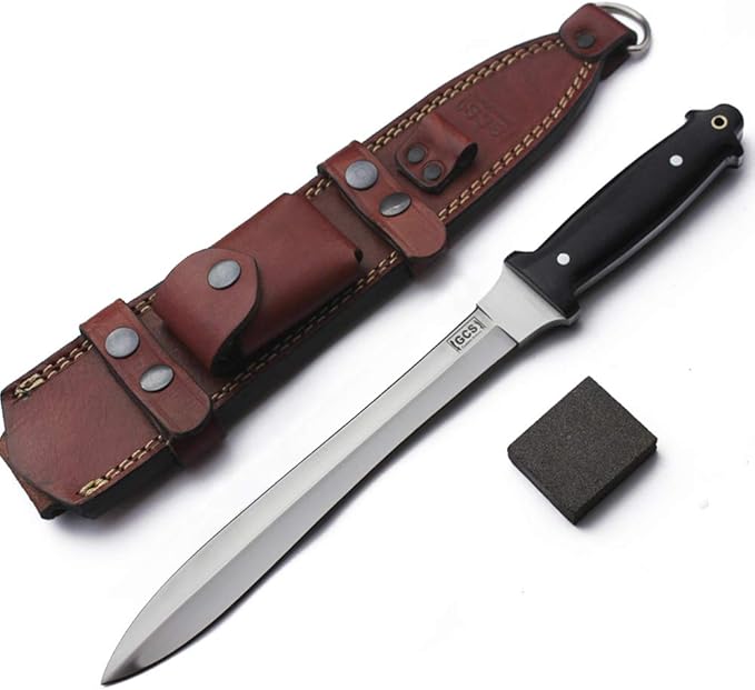 GCS Handmade Survival Tactical Hunting Black G10 Handle with Brown Leather Right or Left Hand Horizontal Fixed Blade Knife Sheath & Sharpening Stone GCS231