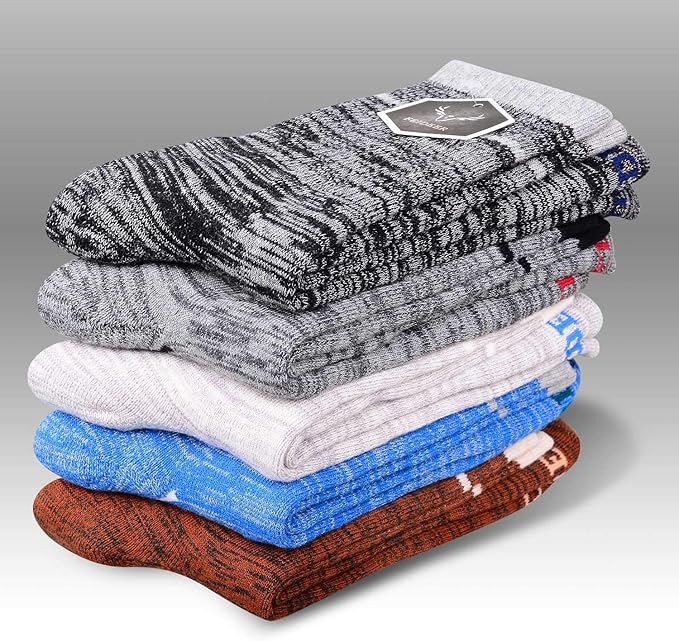 - WIDELY USE: FEIDEER 5 pairs of men's crew socks are high performance socks for hiking, walking, camping, mountaining, skiing, trekking and other outdoor activities or winter sports.