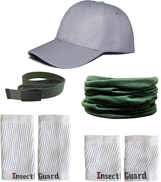 - One Size Fits All Up To Adult Medium. This package includes 1 Grey Hat, 1 Green Length Adjustable 54 Inch Fabric Belt, 1 Pair of White 7 Inch Long Leg Tick Gaiters, 1 Pair of White 4 Inch Long Tick Gaiters / Sleeve Cuffs and 1 Green Tube Bandanna. Registered to Repel MOSQUITOES, TICKS, FLIES & Other Insects.. Great as - gifts for women, gifts for men, gifts for mom and stocking stuffers!