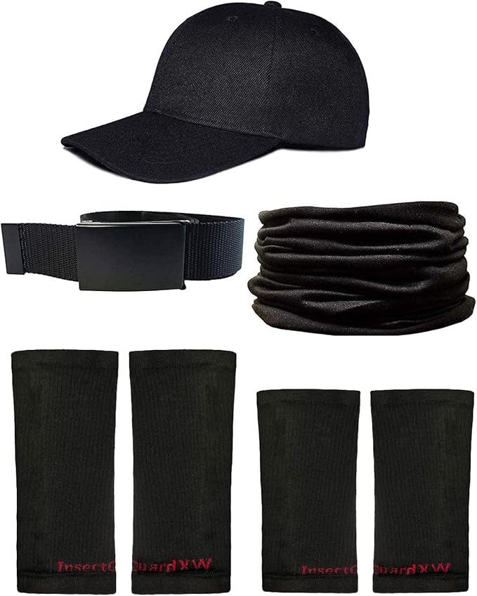 - This package includes 1 Black Size Adjustable Hat, 1 Black Length Adjustable 54 Inch Fabric Belt, 1 Pair of Black 7 Inch Long EXTRA WIDE Tick Sleeve Cuffs, 1 Pair of Black 10 Inch Long EXTRA WIDE Tick Gaiters and 1 Black Tube Bandana. Registered to Repel MOSQUITOES, TICKS, FLIES & Other Insects.. Great as - gifts for women, gifts for men, gifts for mom and stocking stuffers!