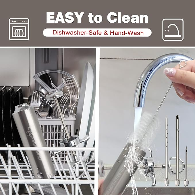 - Easy to Use & Dishwasher Safe: Ergonomic threaded design, easy to assemble or dismantle. 2-oz large capacity injection barrel minimizes refills; plunger handle offers a comfortable grip and friendly pressure control; 3 interchangeable turkey needles multi-holes for deep penetration and sauce distribution, like chunky marinades or liquid brine
