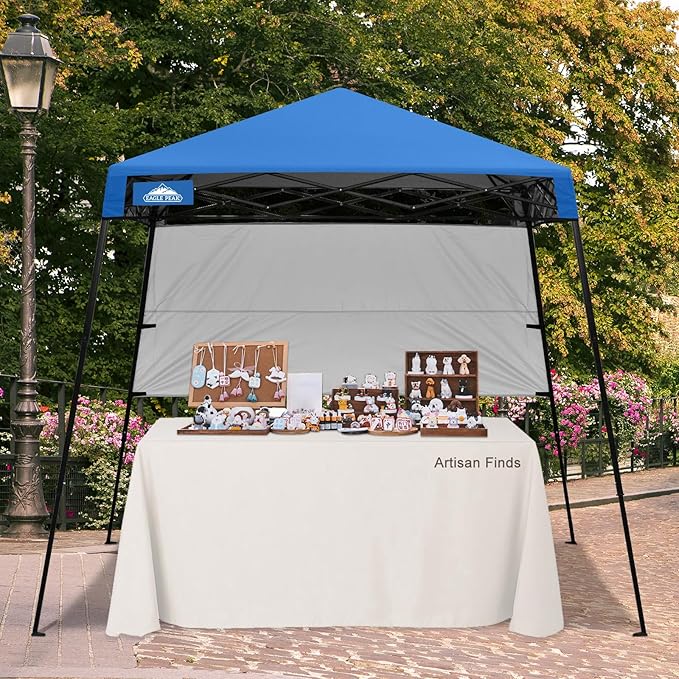 EAGLE PEAK 8x8 Pop Up Canopy Tent with Sidewall, Compact, Portable Slant Leg Instant Sun Shelter for Beach, Sports, & Camping, 8x8 Base 6x6 Top, Blue