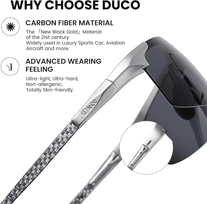 DUCO Mens Sunglasses Polarized Sports Fishing Running Driving Carbon Fiber Sunglasses for Men UV400 Protection DC8277