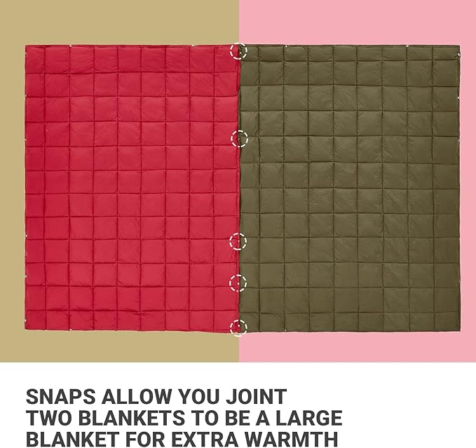 KingCamp Ultralight Camping Blanket, Packable Down Alternative Puffy Wearable Blankets Weatherproof Warm Package Quilt with Snap Buttons for Outdoor Hiking Travel Picnic Stadium (79" x 53", WINE)