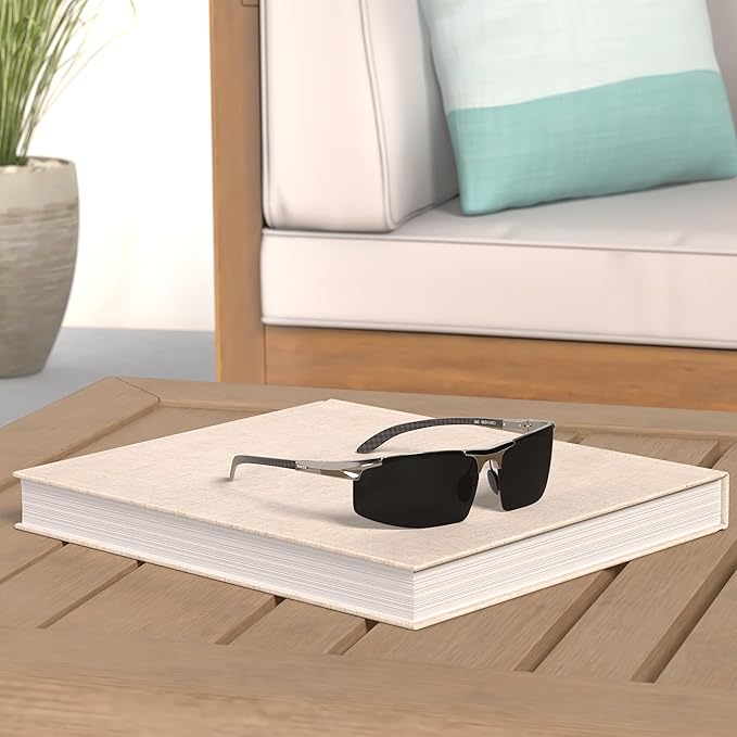 - 【Carbon Fiber Temple +Al-Mg Frame】: the fashion sunglasses is 22.5g, which is 20% lighter than ordinary metal shades,.carbon fiber temple is ultra-light, anti-corrosive and skin-friendly ,Al-Mg metal frame is durable,full of texture as well as lightweight , so it's a perfect pair of mens sunglasses for outdoor accasions.