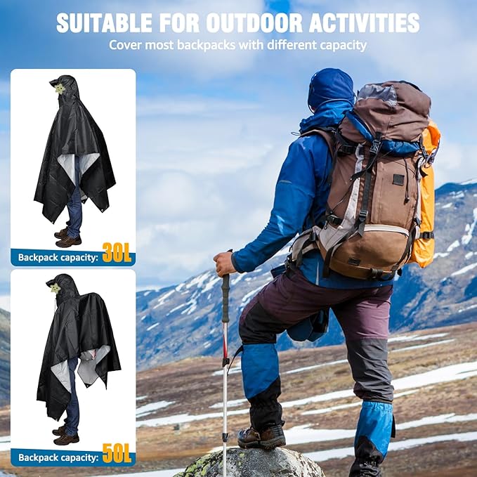 - Breathable & Comfortable: Don't worry that it will make you very hot because the arm holes & bottom are loose enough to allow air circulation.The size is large enough to cover up a backpack as well. It can help keep your backpack dry and prevent water from seeping through and damaging your items. It offers excellent freedom of movement, which makes it very comfortable to wear. Adjusting the snap fasteners on each side it can accommodate a range of body sizes and shapes.