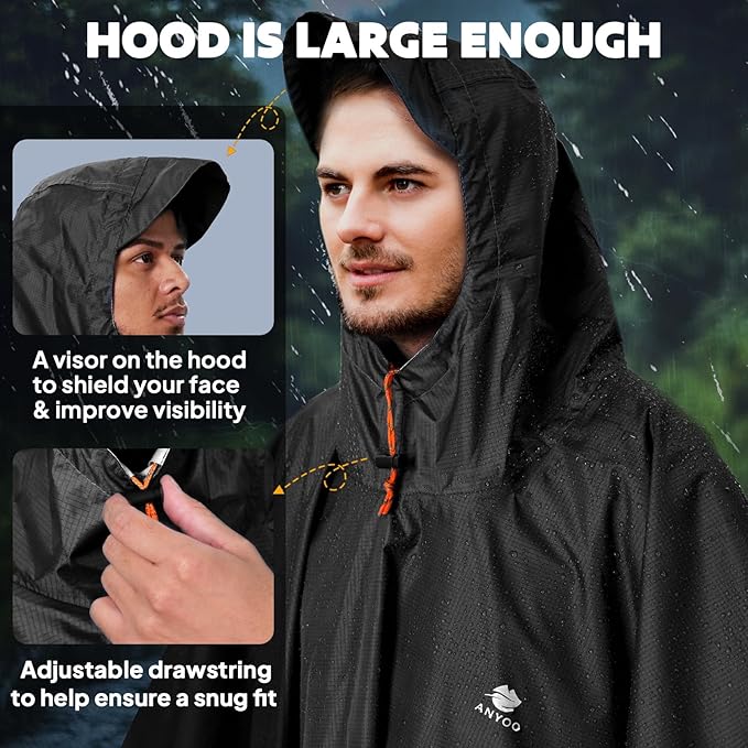ANYOO Hooded Rain Poncho for Adults Waterproof Lightweight Rain Coat for Men Women Reusable Rain Jacket for Emergency Outdoor